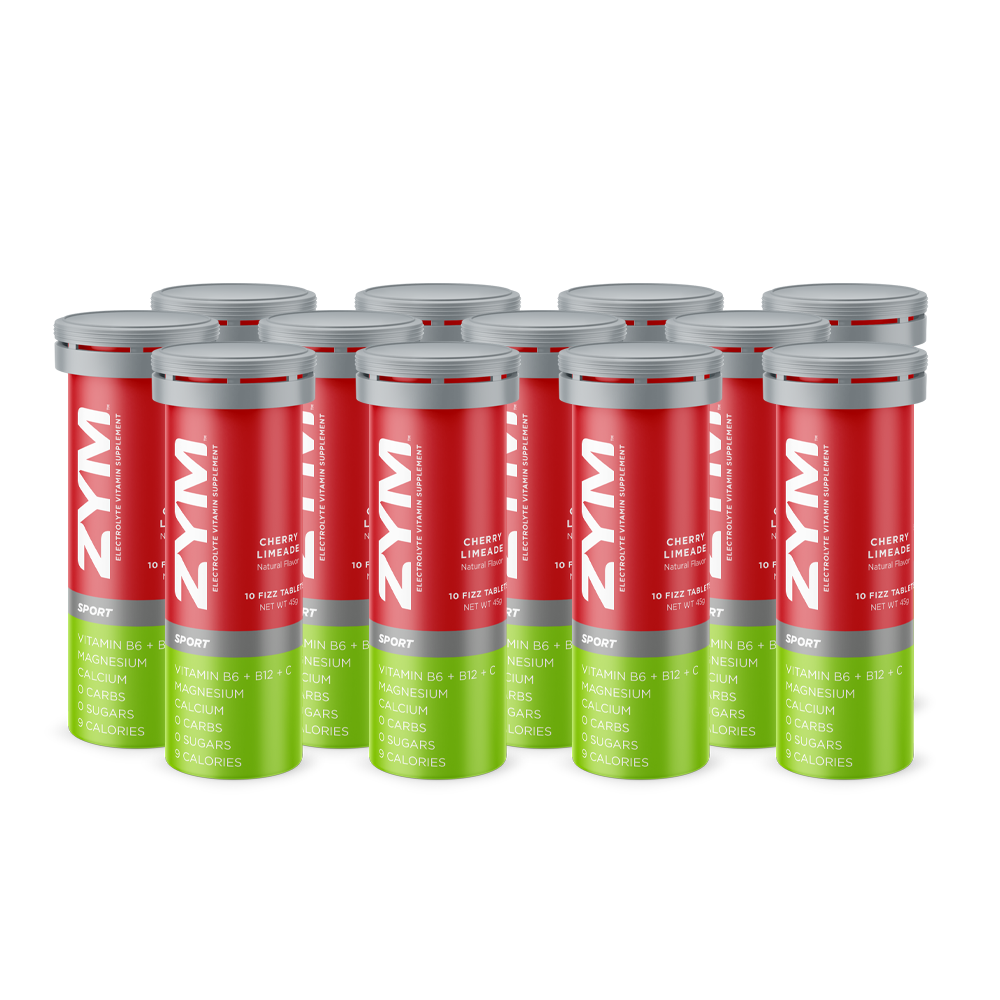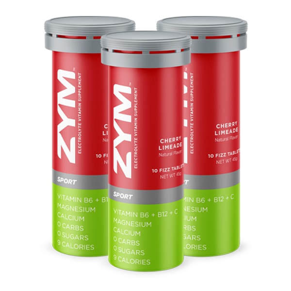 ZYM CHERRY LIMEADE, with natural sour cherry and lime flavor, has a light tart taste of ripe sour cherry with a pinch of juicy lemon and fresh lime, and is designed to combat fatigue, muscle cramps and lactic acid build-up. This is an Electrolyte Vitamin Supplement, containing better ingredients, dissolves faster, contains no sugar, has added vitamins, and tastes far better than any electrolyte tablet on the market. Truly, the taste of ZYM SPORT blows away the competition.