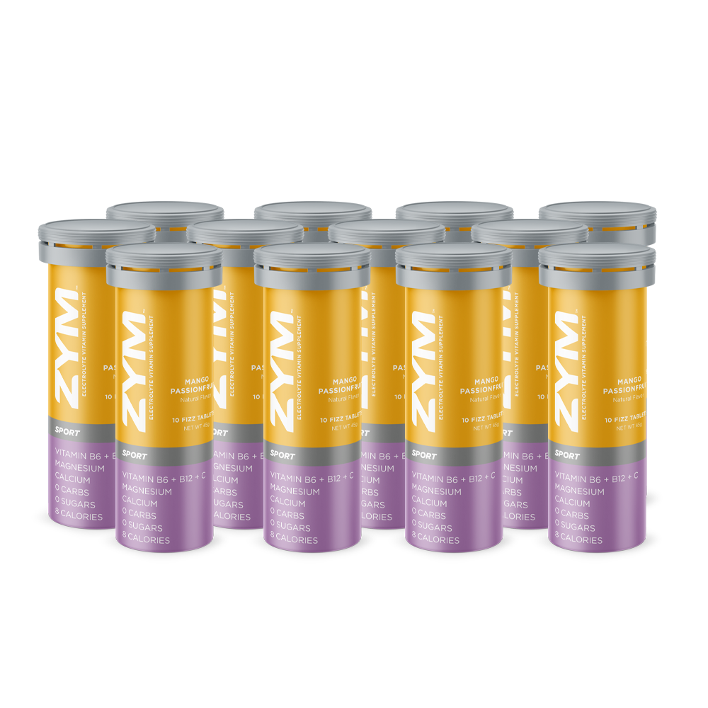 ZYM MANGO PASSIONFRUIT, with natural mango flavor, has a light taste of mango with a pinch of intense passionfruit, and is designed to combat fatigue, muscle cramps and lactic acid build-up. This is an Electrolyte Vitamin Supplement, containing better ingredients, dissolves faster, contains no sugar, has added vitamins, and tastes far better than any electrolyte tablet on the market. Truly, the taste of ZYM SPORT blows away the competition.