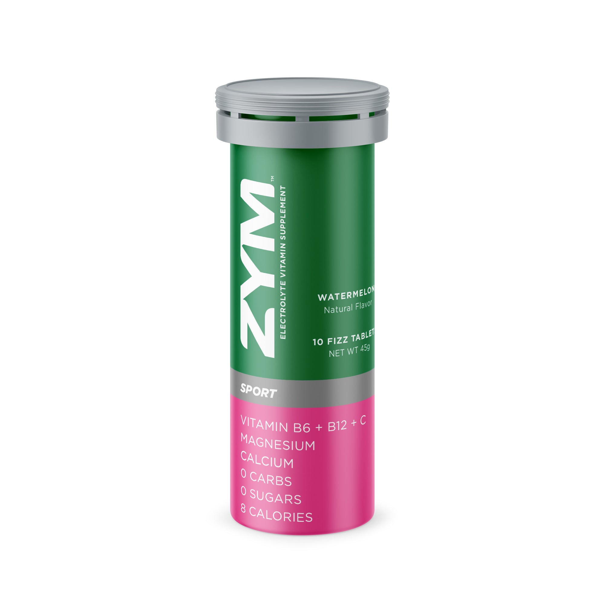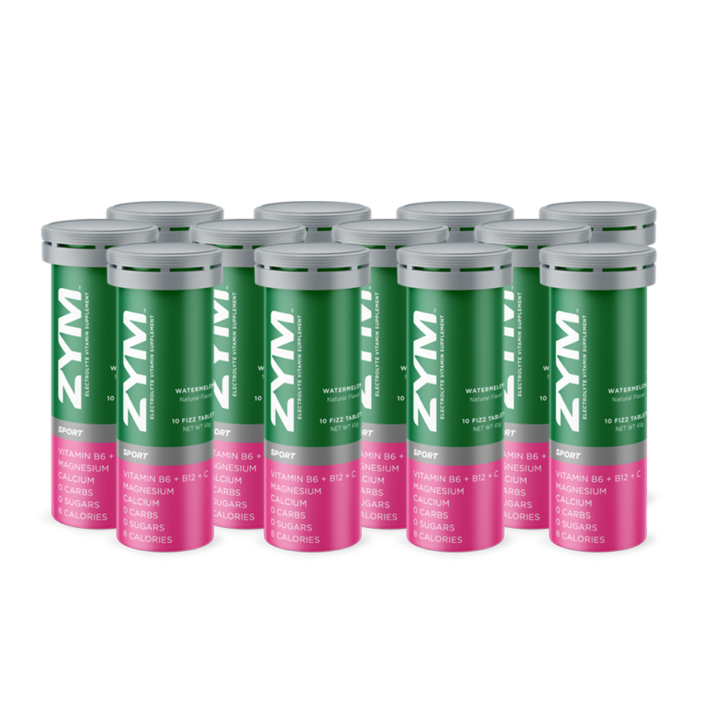 ZYM WATERMELON, with natural watermelon flavor, has a juicy taste of ripe sweet watermelons on a hot summer day, and is designed to combat fatigue, muscle cramps and lactic acid build-up. This is an Electrolyte Vitamin Supplement, containing better ingredients, dissolves faster, contains no sugar, has added vitamins, and tastes far better than any electrolyte tablet on the market. Truly, the taste of ZYM SPORT blows away the competition.